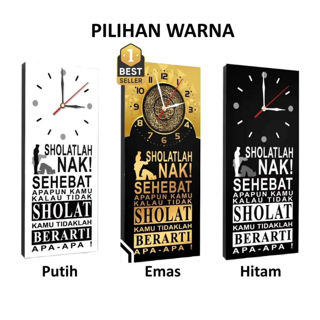Hadir dengan desain islami modern dan kutipan penuh makna, jam dinding ini bukan hanya sekadar penunjuk waktu, tetapi juga elemen dekorasi yang mempercantik ruangan.